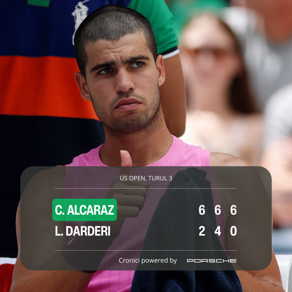 New York, vineri, ora 11:30 dimineața. Carlos Alcaraz coboară pe Arthur Ashe direct din pat cu o singură problemă existențială: omul nu-i matinal. Îl înțeleg perfect, suntem făcuți din același material care duduie seara și noaptea, iar dimineața e una cu pământul. Pentru Carlitos, meciul ăsta a fost echivalentul unei ședințe de rezultate financiare înainte de cafea. Din fericire pentru spaniol, Luciano Darderi a fost și mai adormit. 6-2, 6-4, 6-0, într-un meci care a semănat mai degrabă cu un meci demonstrativ la Kids Day decât cu un tur trei de US Open.