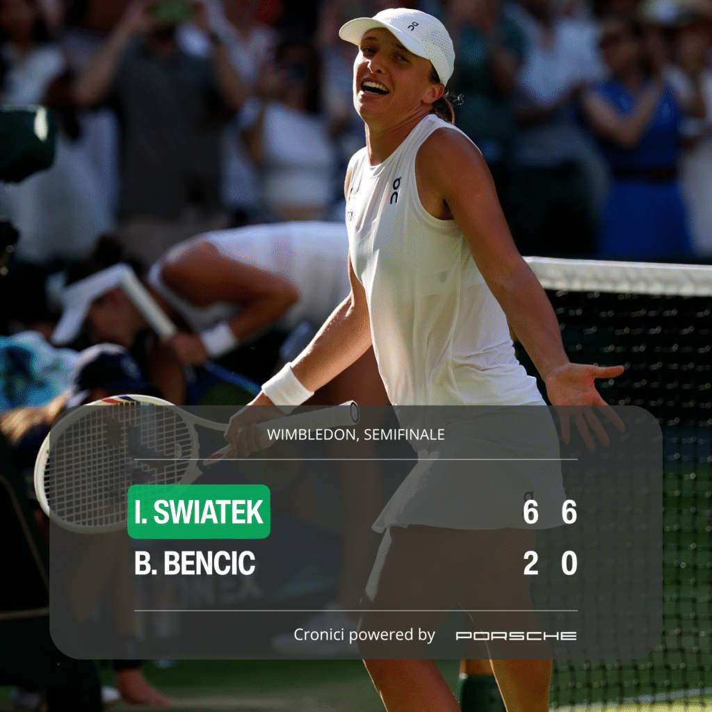 Era bucuroasă, găsise supapa pentru eliminarea presiunii care-i cam supunea osatura la suplicii. A trebuit apoi să piardă Sabalenka cheile de intrare în finală – i se umflau și pupilele. Dacă ai fi Swiatek, cum ai păși pe iarbă în fața lui Bencic, ținând cont că lidera clasamentului și-a găsit mai repede bilet de avion? Ei bine, la fel a făcut și atleta din Varșovia. A măturat cu Belinda și a aprins câteva bețișoare parfumate.