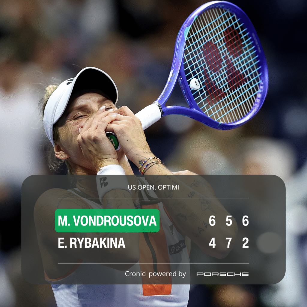 Nu doar că-i vedem iarăși mâzgăliturile de pe brațe zâmbind sub soarele unui mare turneu, dar fata e și în formă de competitoare alfa. După Jasmine Paolini, i-a sugrumat accesul spre fazele finale și Elenei Rybakina. A dat bine atât cu primul, cât și cu al doilea serviciu, i-a înșurubat 13 ași kazahei și a greșit cam de trei ori mai puțin decât partenera de promenadă pe Arthur Ashe. Asta se traduce simplu: a pus presiune pe numărul 10 mondial, i-a plantat capcane în epicentrul subconștientului, a scos-o cu alertă de tsunami din zona de confort.