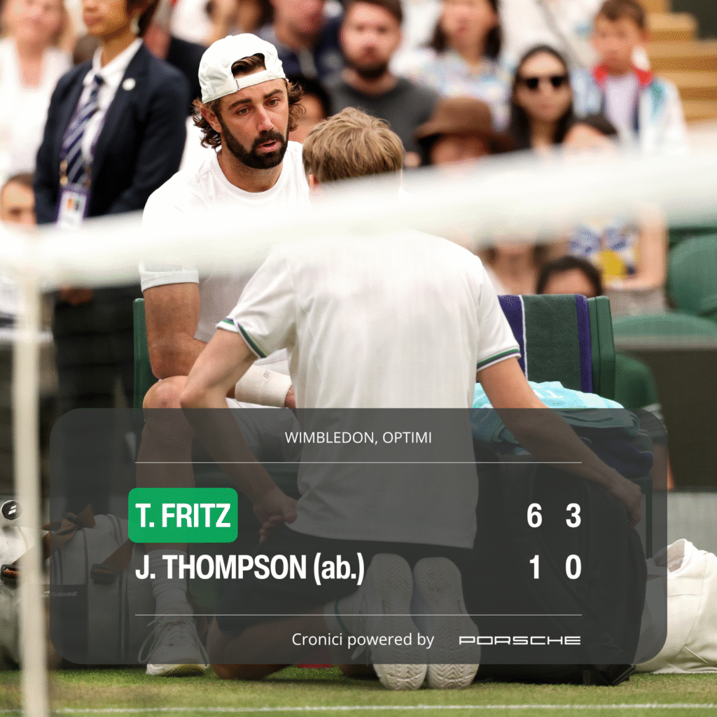 Jordan simțea de la începutul meciului cu Fritz o încărcătură extraordinară. Avea picioarele cât roata tractorului, ditamai uzina pe stângul și pe dreptul. Se iriga musculatura în lung și pe lat, simpla sa prezență pe teren era o sursă de zgomot pe anumite frecvențe. A cerut și sprijinul echipei medicale, i-a luat un game favoritului, apoi – după un set și trei game-uri – a ridicat brațul în semn că fusese distribuit în prea multe pelicule thriller. Era pentru prima dată în optimile de la Wimbledon și poate că-și făcea calcule după ce, anul trecut, tot pe iarbă, îl cârpise pe american cu 2-0.