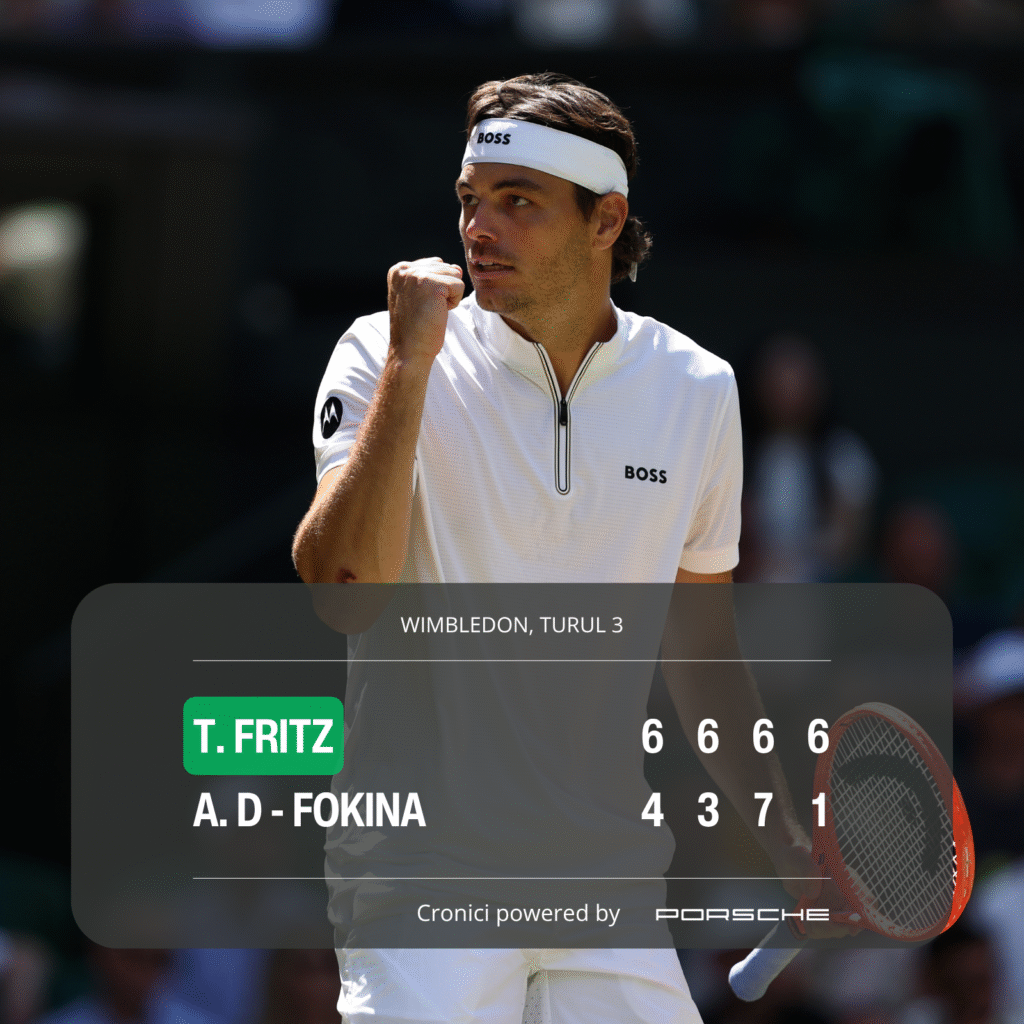 Dar nu e vina lui Taylor că are viață bună sau că Fokina a cedat break la începutul fiecăruia dintre primele două seturi. Fritz a fost mai agresiv și în setul trei a servit pentru câștigarea meciului, doar că adversarul lui a decis că așteaptă pe teren invitația pentru cina aniversară de la ambasadă și a prelungit meciul după un tiebreak ce-a avut darul de a periclita masiv planurile de cină ale lui Tay-Tay.