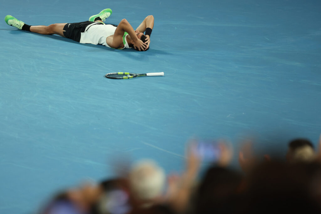 Șapte titluri de Grand Slam la 22 de ani și o colecție de tatuaje care se va îmbogăți cu un cangur, după Statuia Libertății, Turnul Eiffel și căpșuna de la Wimbledon. Carlitos e acum în clubul celor șase mari care au cucerit tot ce se putea cuceri și ne arată că recordurile pe care le consideram bătute-n cuie de generația de platină pot fi încă bătute și-atât. Era o vorbă: soarta recordurilor este că mereu sfârșesc tragic: bătute, doborâte, dărâmate, dinamitate. Iar realizările tripletei Federer, Nadal și Djokovic par astăzi rezultatul unui proces de coacere mai lent.