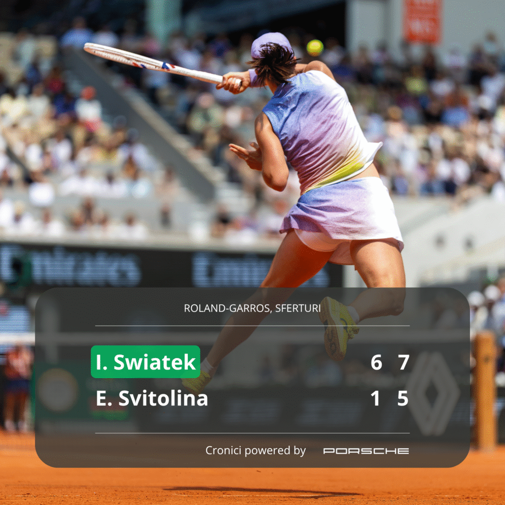 Azi a fost rândul Elinei Svitolina să afle ce înseamnă să joci împotriva unui algoritm uman cu chip de copil care n-a știut să facă diferența când era mic între Chopin și top spin. A încercat, nu zice nimeni că nu. A alergat, a luptat, doar vine dintr-o nație care de ceva vreme știe cum e cu astea. Dar a părut că se bate cu umbrele propriilor limitări mai mult decât cu mingile polacei. În primul set, scorul s-a oprit la 6-1, lucios, necruțător, fără muchii pe care să te agăți.