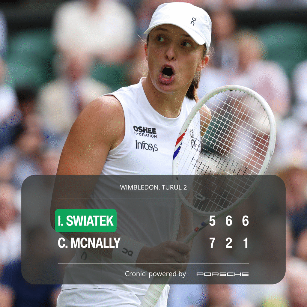 Zilele dezinsecției generale prin Top 10 păreau să continue naiv-vijelios la Grand Slam-ul din Marea Britanie. Iar Iga Swiatek corespundea portretului-robot al victimei cu box office. Iarba verde nu-i place deloc, de aceea îi rânjește din CV doar un sfert de finală la Wimbledon acum doi ani. E tot mai instabilă la acoperiș după ce a coborât de pe frontispiciul WTA și nici nu s-au estompat cum trebuie urmele acelui 0-6 de la Paris administrat de Sabalenka. Parcă imună într-o anumită perioadă, deși atunci era și mai tânără, poloneza încalță tot mai des cizmele muritorilor de rând. Și se stropește. Nu toți stropii sunt apă de ploaie. Pe planetă există și zootehnie.