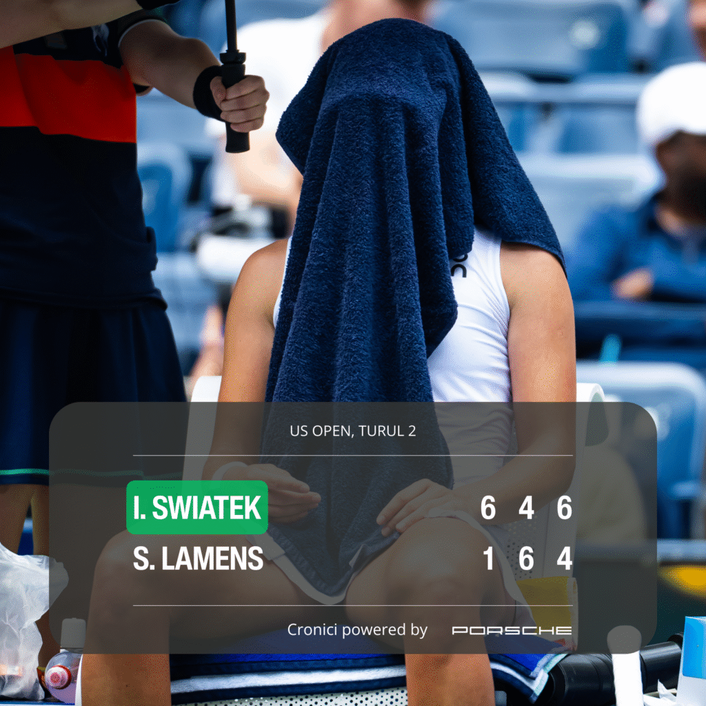 Swiatek nici n-a început azi cu toți titularii, hai să fim cinstiți, doar ne holbăm împreună la fenomen. A avut și doi-trei componenți Under pe teren în primele game-uri. Poate că i-a lăsat și până la final sau i-a schimbat cu alții. A diversificat, a părut că dezvoltă și o parte din încălzire în primul set, rămânând pe picioare și la cele două mingi de 2-0 ale lui Suzan din startul manșei secunde. Auzul, atenția îi erau undeva în căștile alea mari, cât capul, cu care intră pe arenă. Se dezlănțuie în modul, nu depinde de spațiu sau de alte condiții. Un tenis la fel de performant ar executa și pe gresia din baie sau la marginea șantierului, unde mârâie buldozerele și miros iute feliile de salam din pauzele de masă ale salahorilor.