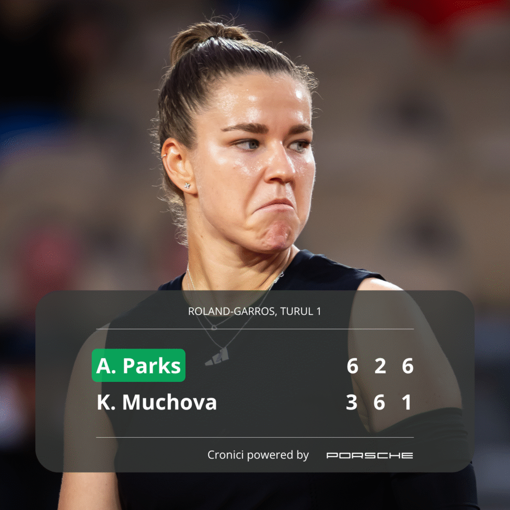 Muchova a fost de nerecunoscut. Sau, mai bine zis, ușor de recunoscut: în varianta post-accidentare, aceeași eleganță risipită și o mișcare care pare mereu compusă din „aoleu” și „parcă știam cum să lovesc reverul ăsta”. A mai avut un zvâc în setul doi — 6–2, cuminte, metodic. Părea că reintră în poveste. Dar în decisiv, Parks a apăsat pedala de accelerație și n-a mai întors capul. 6–1 sec, o curățenie generală în 32 de minute. Muchova n-a mai apucat nici să ofteze frumos. A fost evacuată din turul 1 ca dintr-un apartament în chirie scadentă.