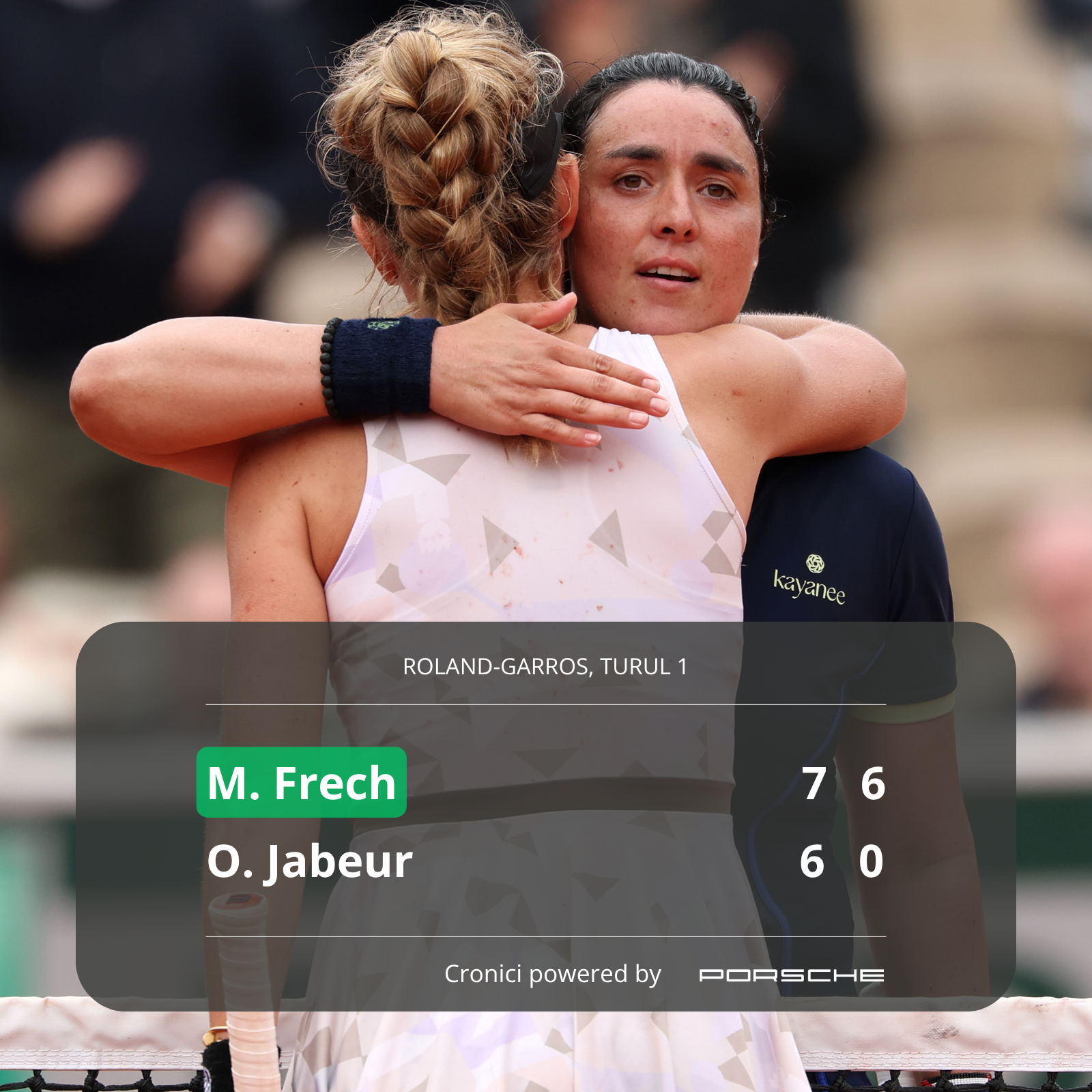 Cândva „Ministră a Fericirii”, Ons pare acum copilul pe care l-ar avea vocea automatizată care anunță întârzierile trenurilor CFR și mânerul de la mobilă pe care acum 16 ani ai promis nevestei că îl repari. Încă un pas pe care Ons îl bifează cu direcția „în jos” a venit în primul tur de la Roland-Garros, jucat cu Magdalena Frech.