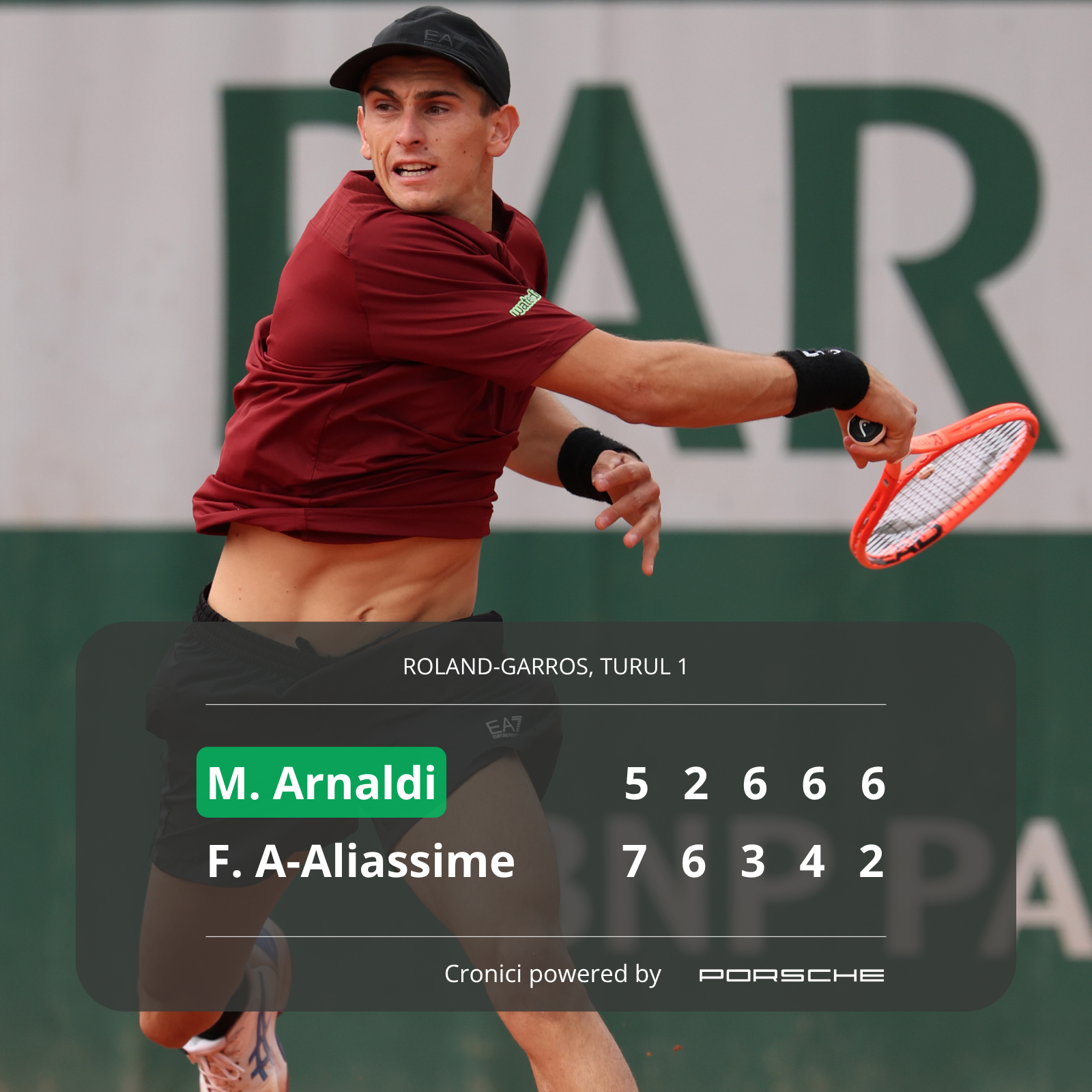 Arnaldi are și ceva puncte de apărat la RG, pentru că anul trecut a ajuns până în optimi, dar meciul cu Aliassime a devenit rapid o partidă de fotbal cu galerii. Pesemne că prin Italia e ceva zi liberă pentru cetățenii care demonstrează dorință și capacitate de deplasare în țara vecină, pentru a-i enerva pe francezii, că Arnaldi a avut galerie ca la Cupa Liceelor. Cum Felix e un fel de francez plecat de acasă și francezii chiar nu au multe variante când e vorba de partizanat, meciul a devenit rapid un fel de Cupa Davis pe rit vechi.
