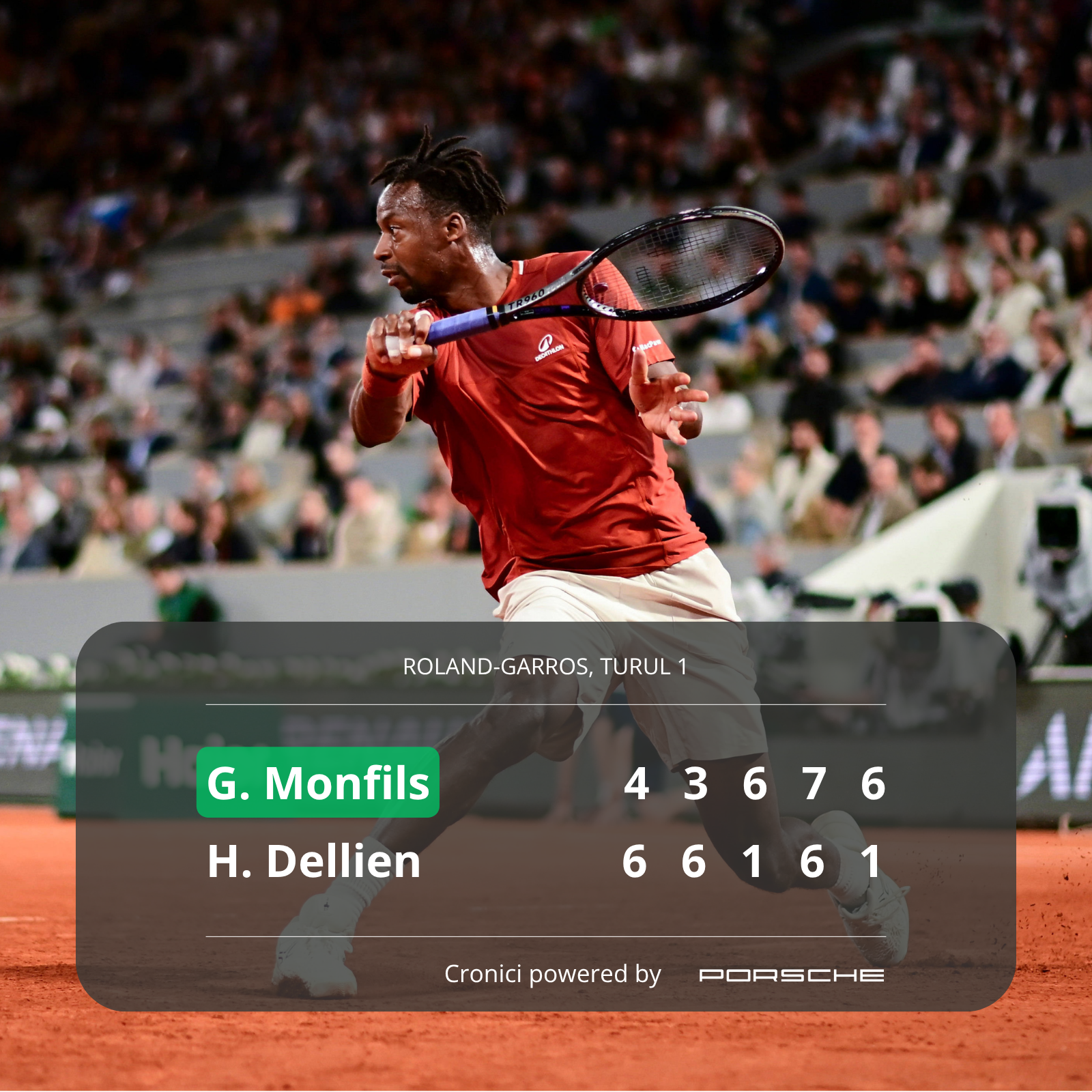 Dellien, cu cei 31 de ani ai săi, era acolo să-și facă treaba, a jucat solid și a făcut puține greșeli. Dar a prins, fără să vrea, rolul ingrat al figurantului într-un film început cu el în prim-plan. A fost acolo ca să-i ofere lui Gaël cadrul, decorul, rezistența. Și n-a greșit cu nimic. Dar asta nu e o poveste despre Dellien, ci despre Monfils, care, pentru a cincea oară în carieră, revine de la 0–2 la seturi și câștigă. Și nu oricum, ci așa cum a făcut-o mereu: cu bucurie, cu acrobații, cu riscuri inutile, rar întâlnite și cu atât mai minunate, cu tribunele la picioare și zâmbetul acela obosit, dar viu.
