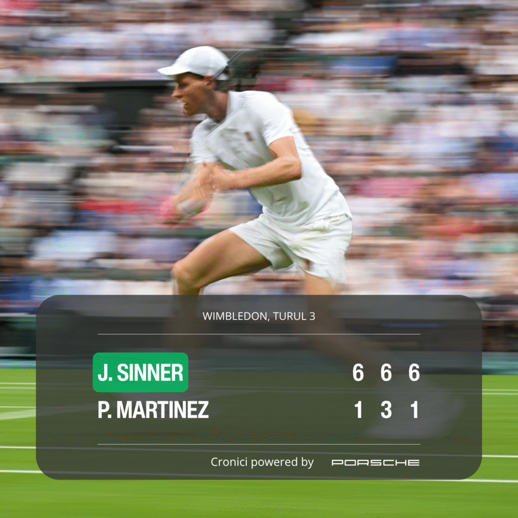 Tipul n-a risipit niciun set la All England Lawn Tennis and Croquet Club, chiar dacă în turul 3 a făcut schimb de amabilități la fileu cu un spaniol. Martinez nu e Carlitos. Apropo, ibericul trebuie să nu fi dormit deloc în noaptea dinaintea jocului cu mașina de tenis – narcisismul e un dezechilibru frecventabil. Îți place să crezi că practici un joc consistent, că tribunele se vor entuziasma la retururile tale adresate șefului ATP, poate chiar visezi să-i capturezi un set, două. Apoi ajungi pe mâna insensibilului din nordul peninsulei italice și e important să salvezi aparențele. Atât îți mai rămâne, astea sunt limitele plauzibilului.