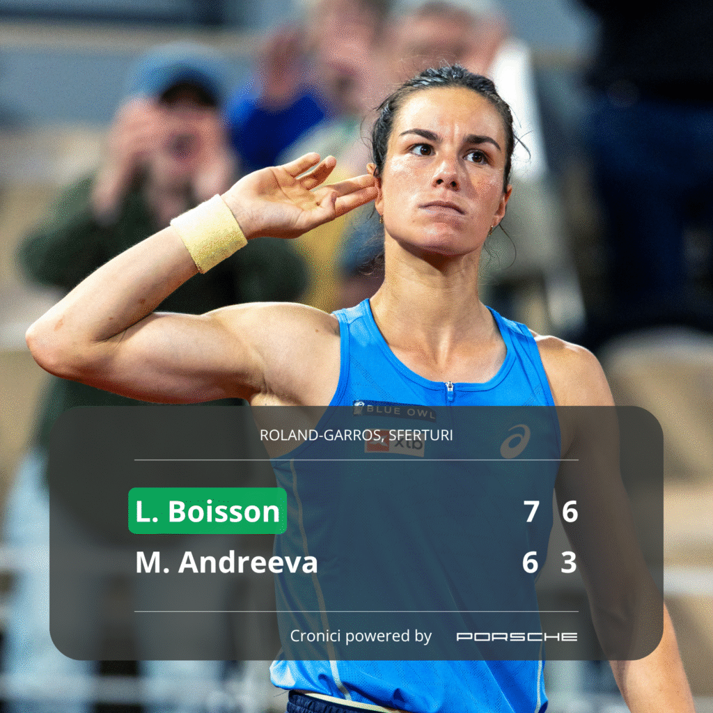Eliberată, Lois a scos din tolbă un tenis strălucitor, în care a combinat cu lejeritate lovituri pe care fete din top 20 nu le stăpânesc atât de bine. Mirra Andreeva a cedat firesc în fața complexității inexplicabile etalate de Boisson. La doar 18 ani, moralul i s-a sfărâmat repede, hăituită de Lois și fluierată de spectatorii de pe Chatrier, care au câștigat și ei un meci azi, împotriva bunului simț.