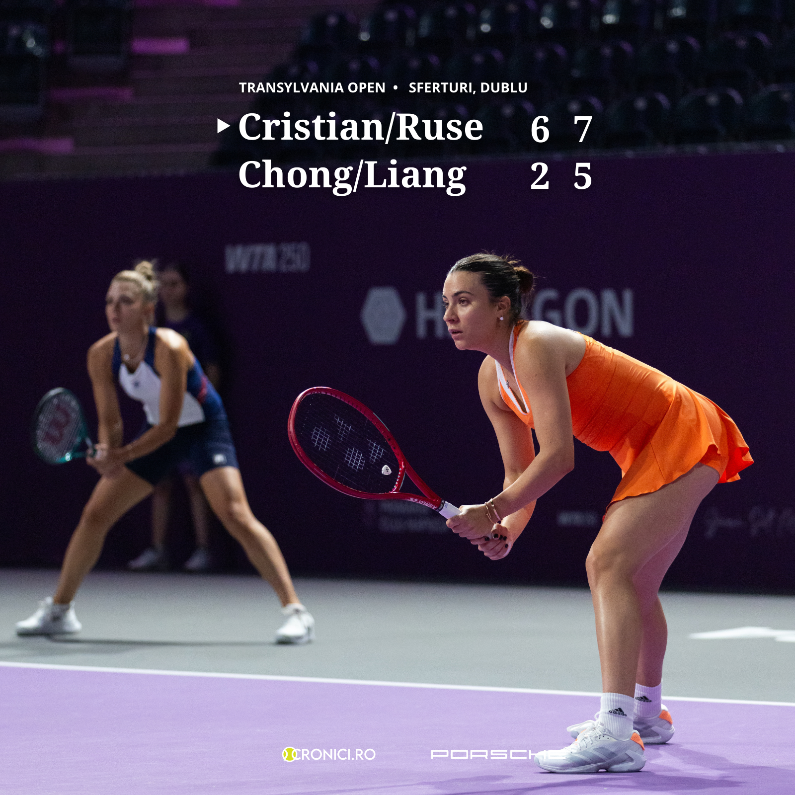 Irina Bara și Eko Gorgodze știu locul și au luat trofeul la prima ediție de la Transylvania Open. Fetele își respectă jurămintele și par într-o relație în care niciuna nu își pune problema că cealaltă s-ar putea uita la episoadele din serialul preferat în absența celeilalte. Jocul le-a mers de la prima cheie și scorul de pe tabelă vă minte-n față când comunică acel zero din dreptul seturilor luate de ale noastre.